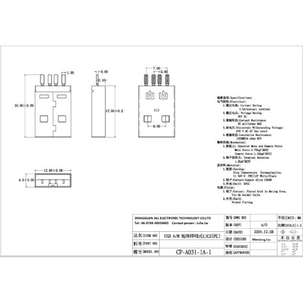 USB A/M 2.0 Short Body connector Specifications and pictures as below :